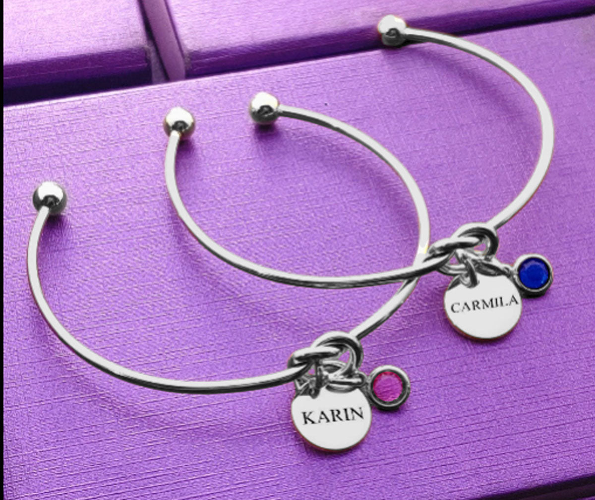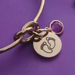 Make your order unique by adding an inscription for the charm and selecting a birthstone for your Free Knot Bangle.